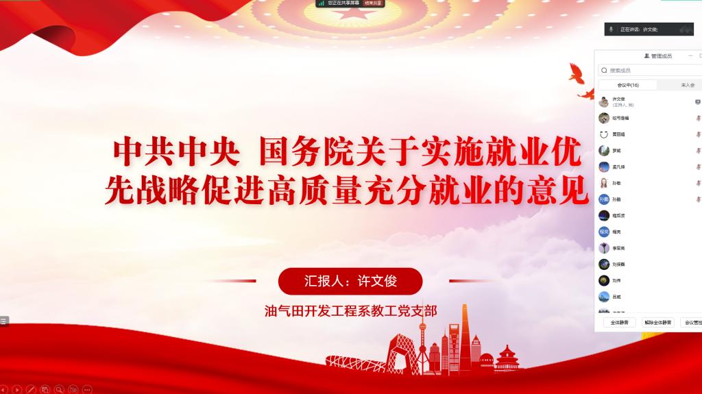 张昊要求,williamhill中文要坚持以习近平新时代中国特色社会主义思想为指导,深入贯彻“三全育人”教育理念,加强石油文化素养教育,根据学生的就业意愿和需求,推荐就业岗位,做好人岗匹配,提升学院就业质量。