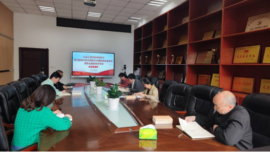 5月8日上午9点,williamhill中文领导班子学习贯彻习近平新时代中国特色社会主义思想主题教育读书班在石油科技大楼C111会议室开展第八次集体学习。