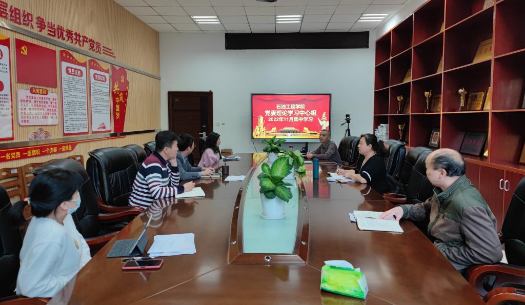 11月7日下午,学院党委理论学习中心组在石油科技大楼C111会议室开展11月份集中学习,会议由学院党委书记张光明主持,中心组全体成员参加。