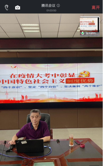 (通讯员 王国庆)2020年6月30日下午,williamhill中文在腾讯会议开展了“在疫情大考中彰显中国特色社会主义制度优势”专题形势政策课。本次课程由石油工程学院党委书记张光明主讲,全院在读本科生、研究生党员参与学习。