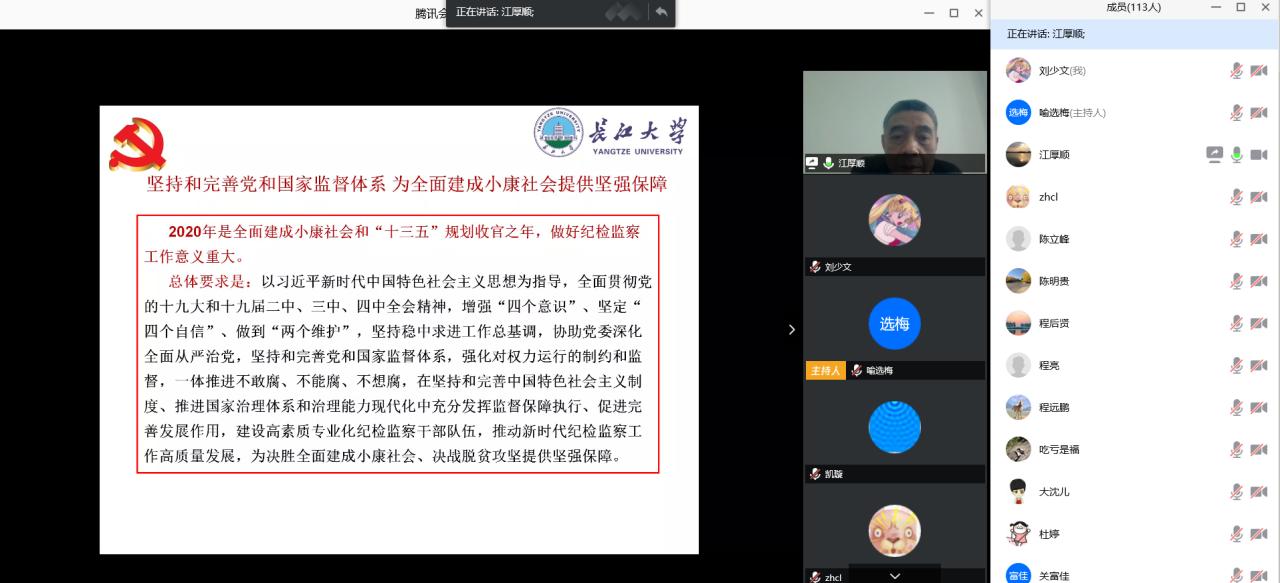 4月23日下午3时,学院通过腾讯会议在线召开4月份师生政治理论学习会,会议由党委书记张光明主持,100多名教职工齐聚云断,对“习近平新时代中国特色社会主义思想”和“奋进新时代 筑梦双一流”进行了线上专题集中学习。