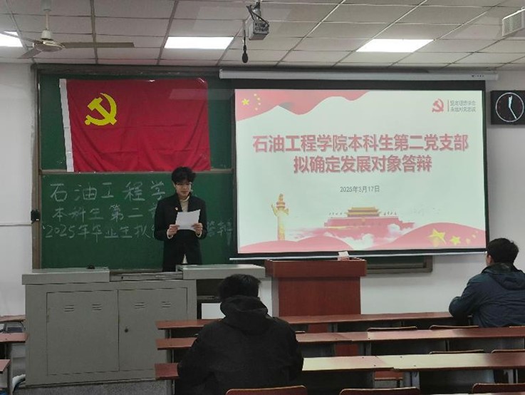 周杨、曹家豪两名同志从本人基本情况、入党动机、自我剖析及未来努力方向四个方面展开答辩。答辩结束后,由支部正式党员进行评议打分,对人选进行综合排序推荐。
