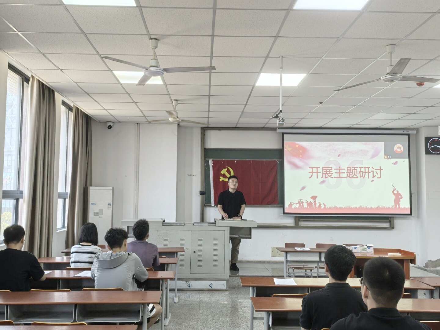 活动最后,支部书记陈金建进行总结,他首先对本次顺利转正的3位同志表示祝贺,希望老党员携新党员一起,铭记党纪学习教育的内容,不忘初心、砥砺前行。同时强调,学生党员要积极发挥党员先锋模范作用,自觉营造文明、和谐、有序的校园氛围,以更好的精神面貌迎接学校本科教育教学审核评估。