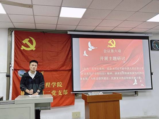 最后,由支部书记陈金建同志作总结,针对主题研讨的内容详细阐述了我校“求实、进取、创业、报国“的校风内涵,并指出在未来的学习和工作中,支部将继续带领全体党员感悟思想伟力、强化理论武装、坚定信仰信念、立足专业特色,以更加饱满的热情与信心聚焦能源安全,为推进强国建设贡献出自己的一份力量。
