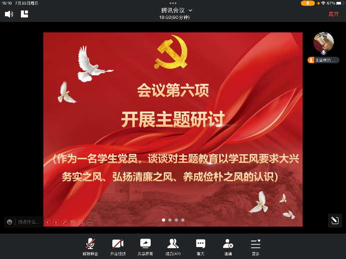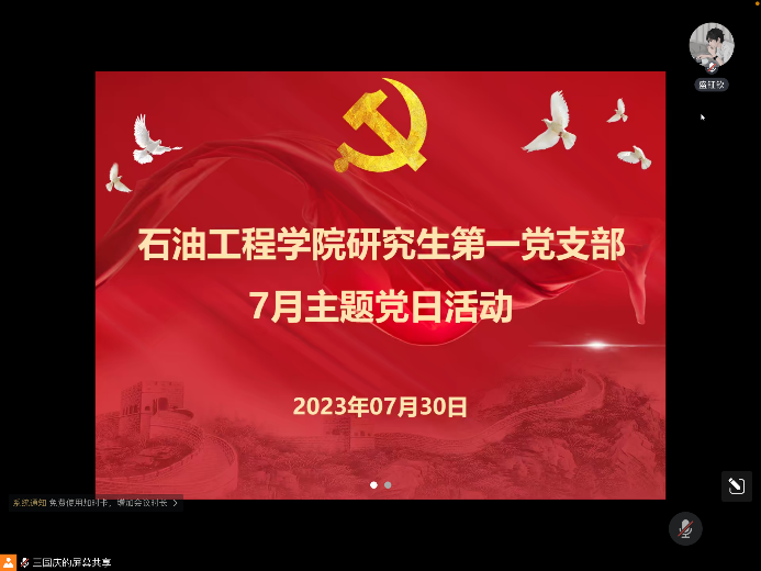 (通讯员 田嘉鑫)2023年07月30日下午3时许,williamhill中文研究生第一党支部于腾讯会议召开七月主题党日活动。本次会议由王国庆同志主持,支部书记史永波及支部党员参会。