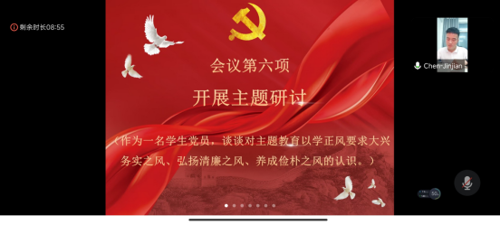 (通讯员 张新龙)2023年7月21日19时,williamhill中文研究生第二党支部于腾讯会议召开7月支部主题党日活动。本次会议由支部书记陈金建同志主持,支部研究生党员同志参会。
