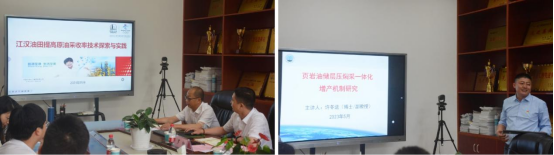 在科研技术交流会上,双方就“江汉油田提高原油采收率技术探索与实践”、“复兴地区陆相页岩油气室内实验研究及试采特征”、“普通稠油油藏微动力降黏非均相复合驱油技术”、“页岩油储层压焖采一体化增产机制研究”等技术主题进行了交流。与会党员畅所欲言,分享学术观点,交流生产实践,探讨提高油气采收率的新思路新成果,为联合组织科研攻关,破解科研生产难题,实现“增储上产”及“一流学科”建设奠定了坚实基础。