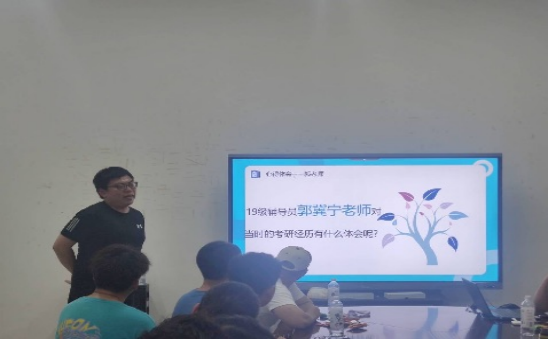 19级辅导员郭冀宁老师给同学们分享了自己三个月考研上岸的经历,并强调到虽然自己复习的时间并不长只有三个月,但自己在这三个月中每一天都非常认真,过的非常充实,并且每一天都有所收获。最后郭老师强调到同学们一定要认真备考,学有所获,避免假性努力,自己感动自己,就一定能够成功上岸。