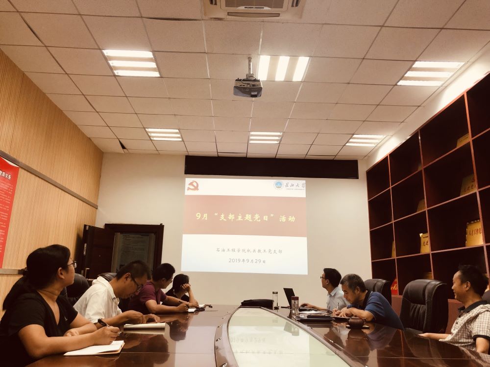 2019年9月29日下午,学院机关教工党支部在石油科技大楼C111会议室开展了“不忘初心、牢记使命”为主题的9月“支部主题党日”活动,活动由党支部书记焦简金同志主持,党支部全体党员参加活动。