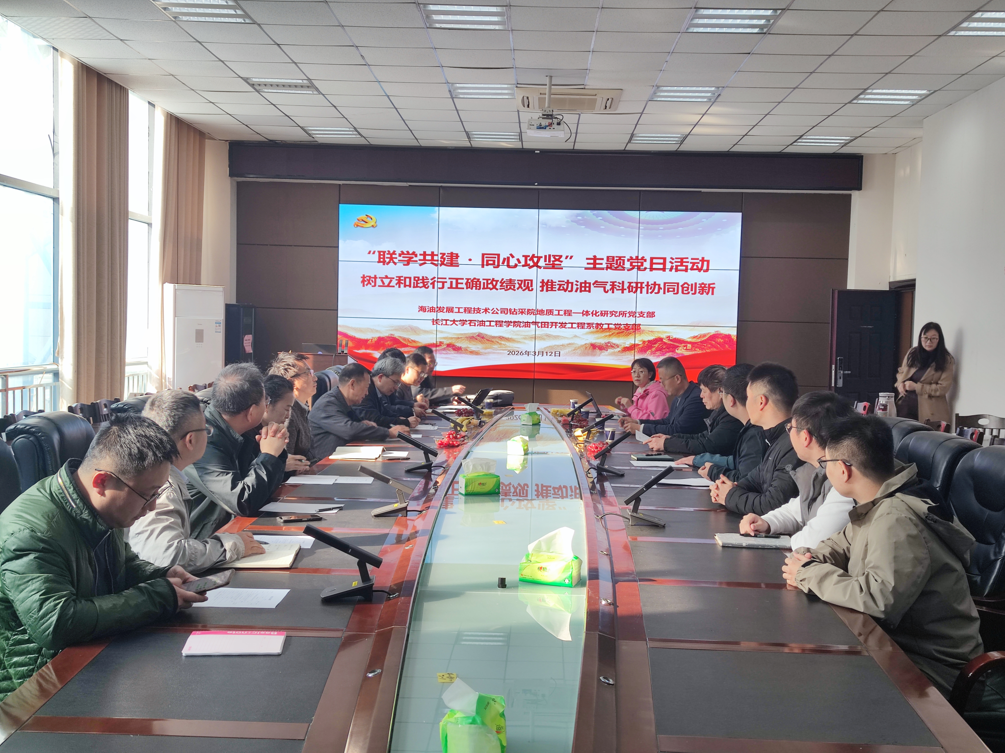 (通讯员 蔡琼 许文俊)为深入学习贯彻党的二十届三中全会精神,扎实推动党建与业务深度融合,3月12日,williamhill中文油气田开发工程系教工党支部与中海油能源发展工程技术公司钻采院地质工程一体化研究所党支部在石油科技大楼B113会议室联合开展“联学共建·同心攻坚”主题党日活动。中海油能源发展工程技术公司钻采院地质工程一体化研究所党支部书记石雪峰主持活动,油气田开发工程系教工党支部师生代表及钻采院地质工程一体化研究所专家代表参加活动。