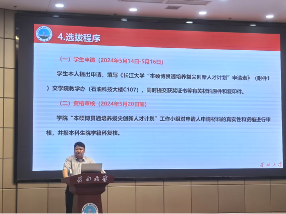 张顶学为同学们解读了《williamhill中文2025届毕业生“本硕博贯通培养拔尖创新人才计划”选拔工作方案》。他指出,创新人才计划针对本科毕业生包括“3+1+2本硕连读”以及“4+5直博”两种模式,选拔条件是必修课绩点专业排名前30%,本硕连读需要通过外语四级,直博则需要通过外语六级,学生取得推免资格后正式生效。他希望同学们根据自身实际情况做好学业规划,积极申请并参与选拔。