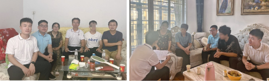 在家访过程中,老师们深入了解了学生的家庭情况,向学生家长简要介绍了学生在校期间的具体表现和学习、生活情况。老师们还从就业、未来规划等方面与同学和家长进行了深入的沟通交流,鼓励学生抓住假期时间,积极参与实践锻炼,及时巩固所学知识,努力提升自身的综合素质和学业水平。在家访时,老师们给学生家庭送去了慰问品,还给家庭经济困难学生专门送上慰问金,代表学校、学院表示关爱。对家长提出的实习安排、奖助政策、就业前景等问题,各位老师一一进行了详细的解答。