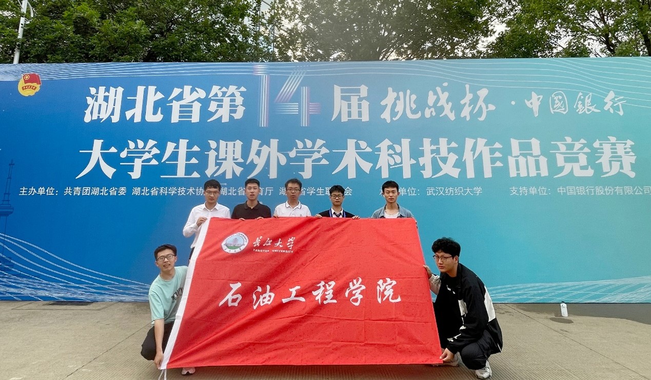 5月27日,湖北省第十四届“挑战杯·中国银行”大学生课外学术科技作品竞赛在武汉纺织大学举行,来自全省91所高校的446件作品进入终审决赛。探索“石”代团队参赛项目《探索“石”代—油气智能增产开发的探索者》,在决赛中斩获湖北省一等奖(金奖)。