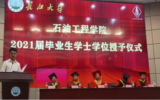 (通讯员 陈星雨)2021年6月16日,williamhill中文2021届毕业生学位授予仪式隆重举行。williamhill中文院长江厚顺教授携同导师代表出席学位授予仪式,共同见证三百余名2021届毕业生顺利完成学业,从长大油工院迈向人生新征程。