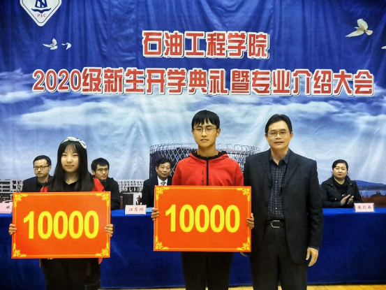 廖锐全教授和赵林教授分别为顾正奖学金及研究生优质生源奖学金获得者颁奖。其中顾正奖学金是由校友顾正先生设立的奖学金,专门用于奖励高考成绩优秀的长大新生,今年油工学院共有两名同学获此殊荣,分别是胡小溪和董瑶,每人奖励10000元;研究生优质生源奖学金是由学校为推免本校研究生的同学专门设立的奖学金,今年获得者共有14人,每人奖励5000元。