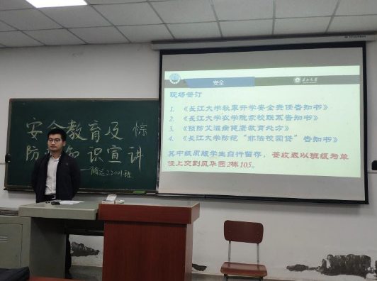 会上,班主任老师进行了安全教育及防疫知识宣讲,告诫同学们:不要到湖边游玩,更不要下湖游泳,时刻注意人身安全、财产安全;宿舍内不得使用发热电器,以防发生火灾;疫情期间,大家最好带上口罩,勤洗手、多通风,谨防感冒。各班同学纷纷表示赞同并签订了相关安全责任书。