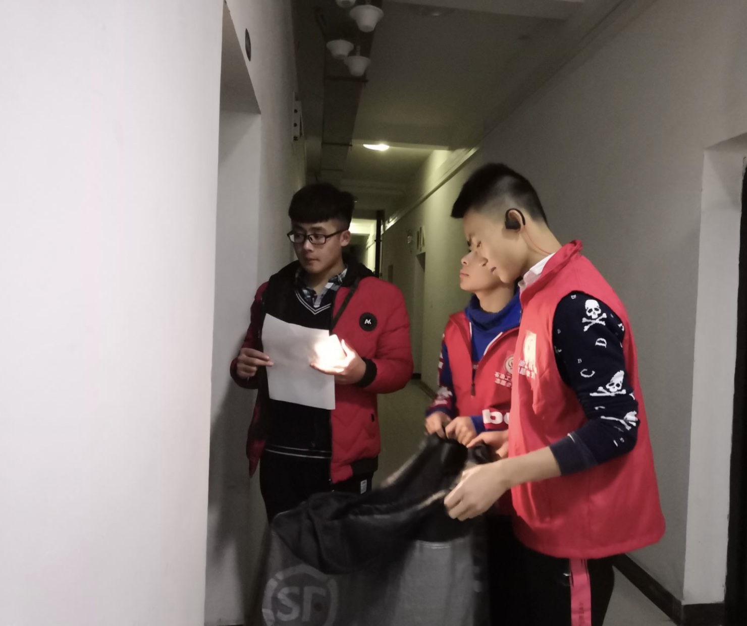 活动前期,志愿者均表示很乐意参与到活动中来。当晚,志愿者们集合完毕后由相关负责人为同学们分组,随后各组长带领组员们到宿舍楼进行废品回收,最后在固定地点集合。晚上21:00准时开始收废品,每组安排三至四名人员,负责收废品和宣传环保理念,在回收废品的过程中,大家一遍又一遍地耐心询问,同学们积极配合,纷纷拿出自己的废瓶纸箱,志愿者们将收集到的废品在寝室楼下集中,并进行装袋。活动进行的十分顺畅。一名参与了活动点滴过程的志愿者这说:“废品回收整个过程虽然又脏又累,但在参与到其中时我感受到同学们环保意识不是很强,而我的工作却能够提高同学的节能意识,我感到很有意义。”