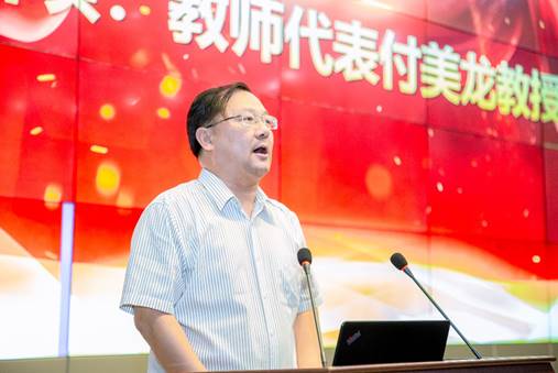 威廉官网中国2019年“优秀共产党员”付美龙作为学院教师代表发言,勉励学生以“民族柱石、国脉钜工”的勇气和担当,共同创造学院更加美好的明天。大学生涯如何度过?他说:“大学最重要的就是要有规划,过好大学的‘三室一厅’——教室、寝室、图书室和学术报告厅。”他希望广大学生在四年的学习和历练之后,要具备大爱无疆、大任无怨、大智若愚、自律强大的优秀品质。