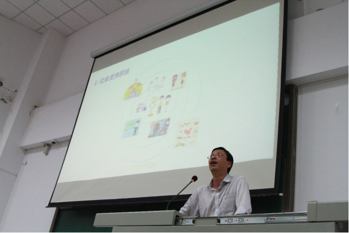 炎热的天气丝毫没有消磨同学们的热情,18级各班同学早早来到B101教室,7时整,大会准时开始。首先,梁军老师从社会支持系统、构建良好人际关系、学生干部必备技能、交流与讨论四个方面为大家讲述了人际关系的相关内容。当你遇到困难时会向谁求助?当你感到高兴时,你会与谁分享?所谓社会支持系统,就是个人得以维持社会身份并且获得情绪支持、物质援助和服务、信息与新的社会接触。梁老师首先解释了社会支持系统的含义。