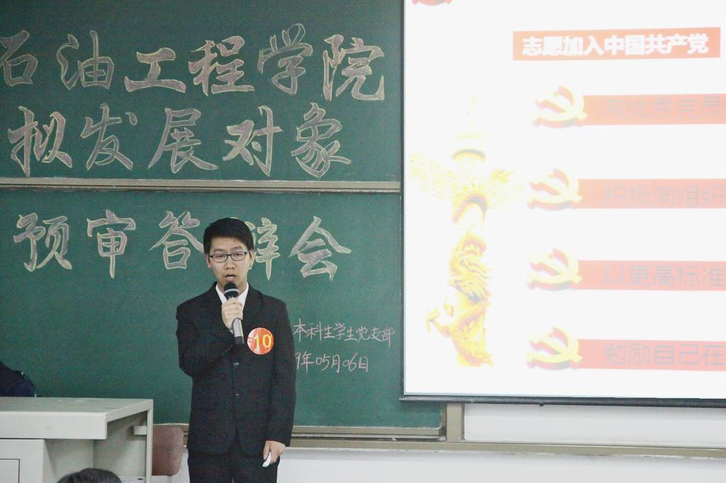 每一位答辩选手都是油工院最出色的学子,他们不仅仅是学习中的佼佼者,成绩名列专业前茅,更是威廉官网中国各个社团组织以及各类活动的引领者,带领同学们积极进取,奉献自己。在答辩的自我陈述部分,大家结合自身实际情况,具体深入地谈到了对党的认识、入党动机和自身的现实表现。在党识党情考察环节,每位答辩者都要从准备的题目中抽取一题作答。这些题目涉及到中国共产党的宗旨、党的性质、党在社会主义初级阶段的基本路线、党员的权利与义务、我国现阶段的基本矛盾等,大部分答辩者经过长期思想政治理论学习和熏陶都能流利作答。
