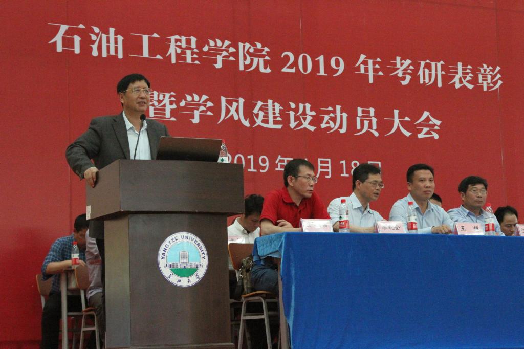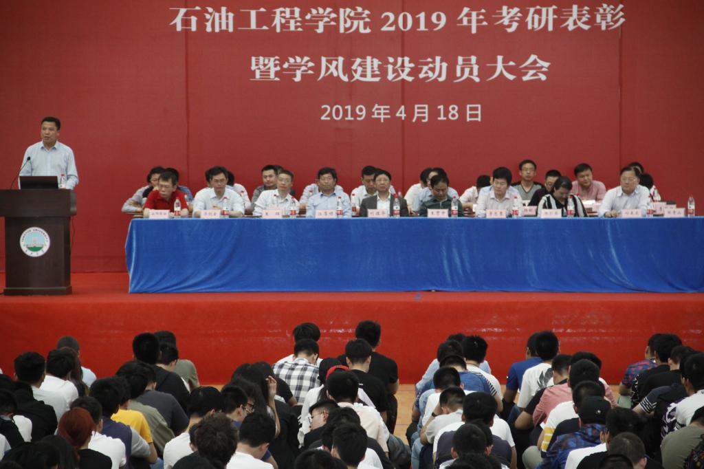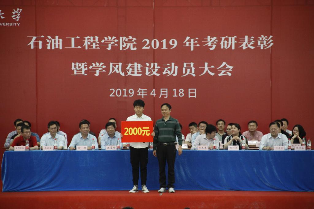 大会在激昂雄壮的国歌声中拉开帷幕。首先由副院长李忠慧老师宣读williamhill中文2019年考研表彰文件。在2019年全国研究生入学考试与复试中,有108名学生顺利通过初试和复试,被威廉官网中国等18所学校或科研院所录取,其中石油之光21501班录取率为62%,华林公寓2#220和校内女寝4#547两个寝室更是取得“全员高中”的好成绩。随后,10位考研优秀学生代表和15位考研先进集体学生代表依次上台接受表彰并与颁奖领导合影留念。考研优秀学生代表、石油之光21501班朱清源(384分考取中国石油大学(北京))和储运21503班李伯英(354分考取威廉官网中国)分享了他们大学学习生活经历和复习备考经验。
