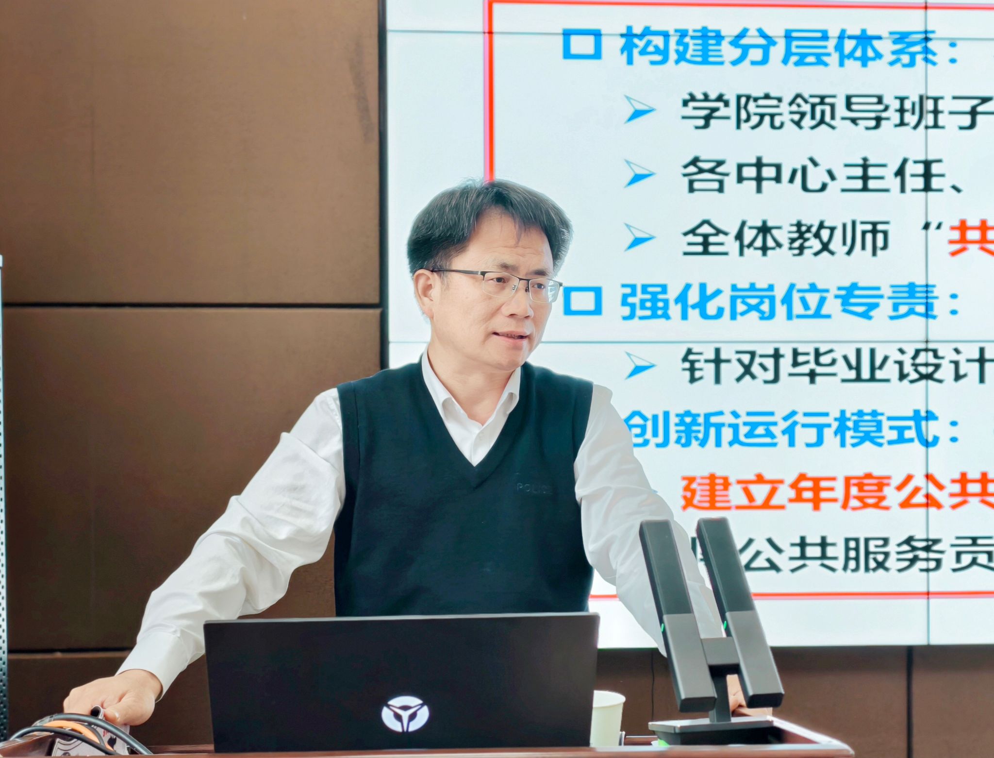 会议第二阶段,党委副书记张昊作实验室安全专题工作汇报。他指出学院将压实主体责任,深化警示教育与靶向自查,依托安全委员会,抓实常态化精准检查,聚焦研究生群体,构建全方位安全教育体系,实现实验室安全隐患“早发现、早整改、早消除”,杜绝重特大安全事故发生,以高水平安全管理护航学院教学科研活动有序开展。随后张昊还通报了近期实验室安全检查情况。