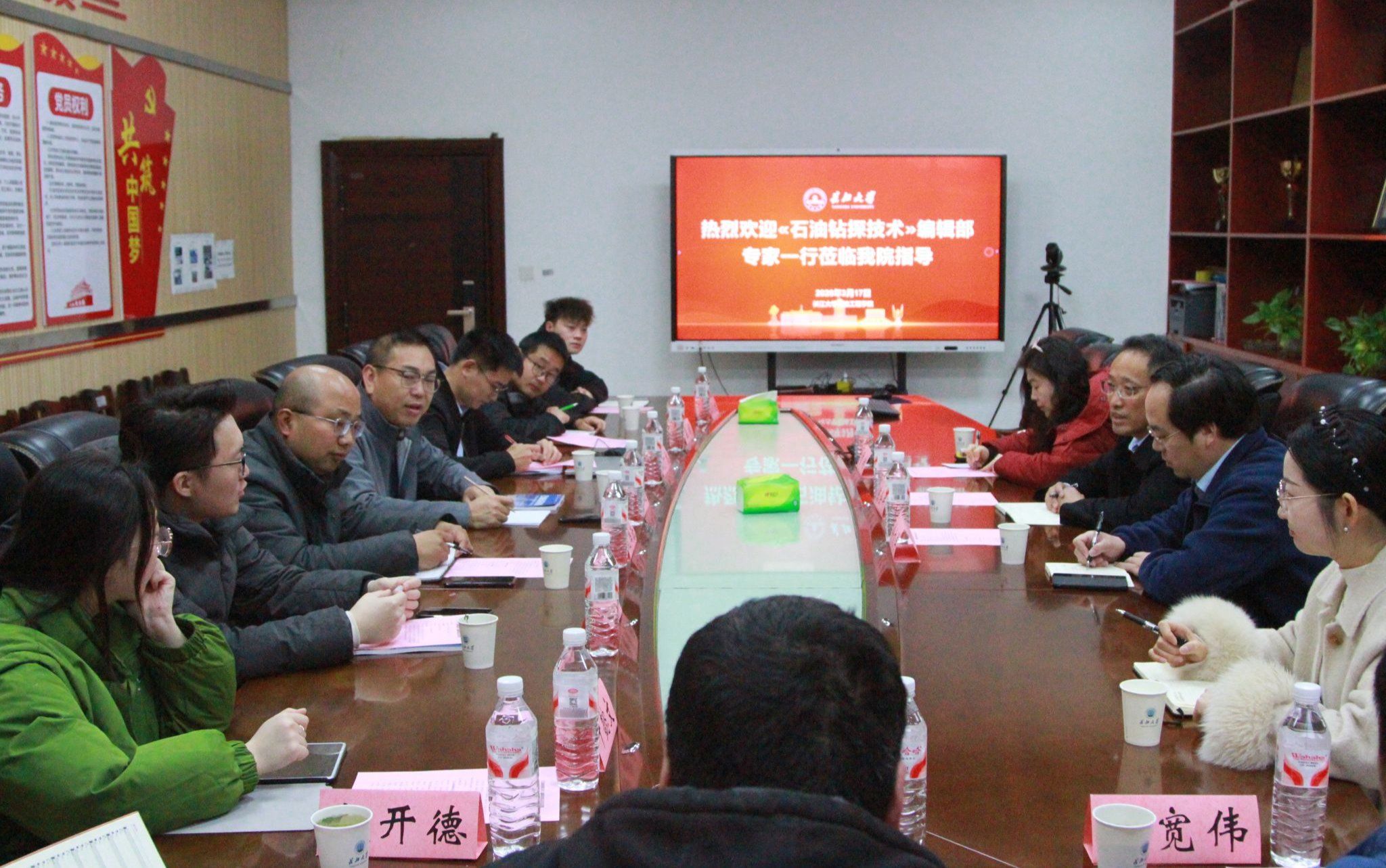 317日,《石油钻探技术》编辑部常务副主编陈会年、副主任令文学、策划编辑曹耐一行到访我院,与我院师生代表举行交流座谈会。座谈会由副院长郑双进教授主持。