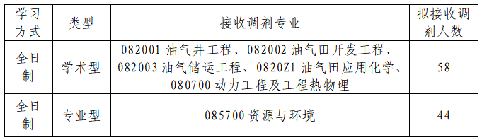 (2)英语水平要求:拟调剂考生须通过英语CET-4(425分及以上),其中本科为石油工程(081502)、油气储运工程(081504)、海洋油气工程(081506)专业无英语要求。