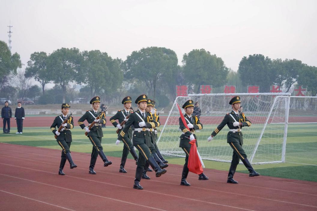 7时整,升国旗仪式正式开始。国旗仪仗队的同学们身着戎装,昂首挺胸,迈着整齐划一、铿锵有力的步伐,护送鲜艳的五星红旗至升旗台。随着宏伟激昂的《义勇军进行曲》奏响,师生们注视着五星红旗冉冉升起,在熠熠晨光中迎风飘扬。
