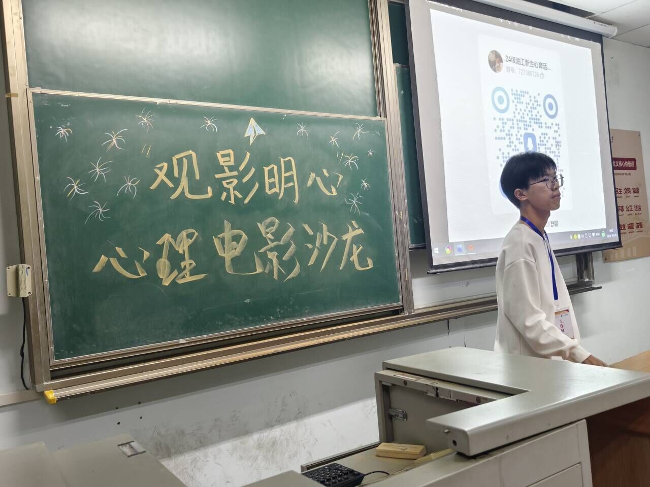 “观影明心”心理电影沙龙旨在通过将日常大众电影与心理知识相结合,以学生喜闻乐见的心理知识普宣形式,拓展心理健康教育影响范围,帮助学生更好地助人自助。