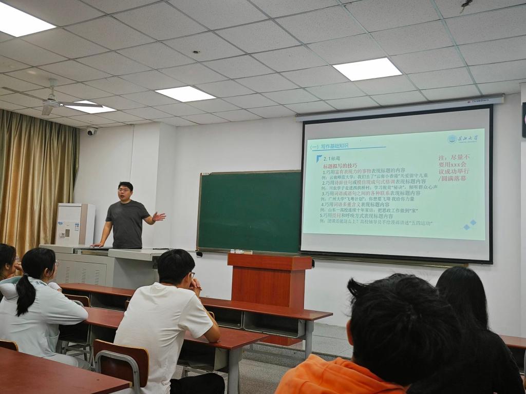 (通讯员 窦晨轩/文 成雨音/摄)为提升学生工作者撰写新闻稿件的能力,加强同学们对于宣传活动的重视程度。10月10日中午12点,辅导员韩清越在武汉校区A栋101教室举办了宣传培训会。学生会各部门成员及各班团支书均参加了本次活动。