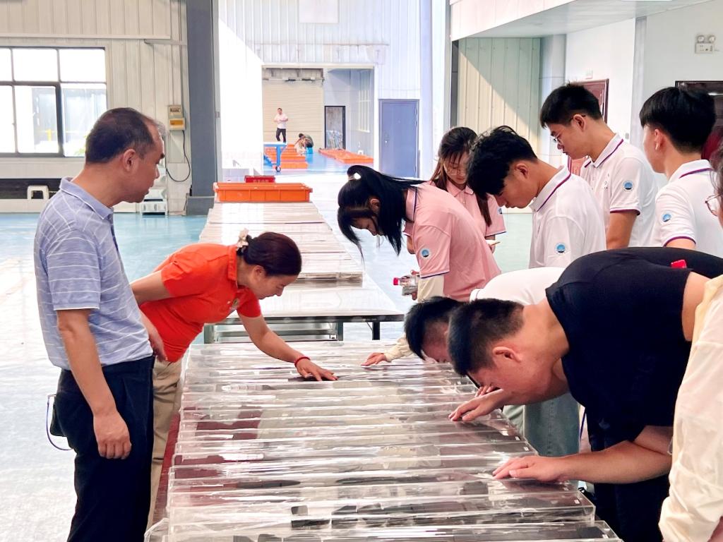 在高级工程师高俊峰学长的接待下,实践队员们首先乘坐小客车前往江汉油田采油厂。沿途的景色让队员们感到惊讶,一排排整齐排列的磕头机在有条不紊地工作着,数量之多令人震撼。这场景让队员们深感自己将来要从事的工作的伟大,也更加期待接下来的实践活动。