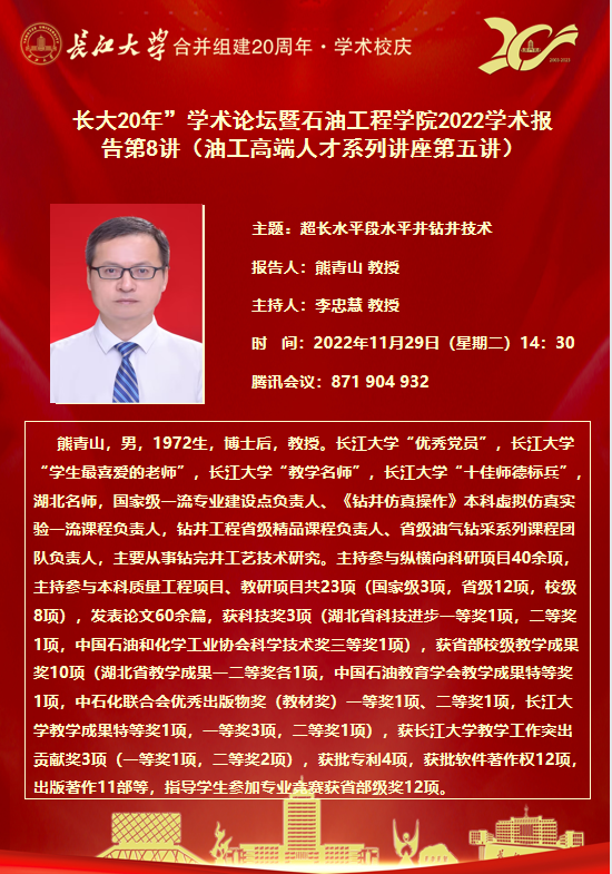 下一条:“长大20年”学术论坛暨williamhill中文2022学术报告第7讲(油工高端人才系列讲座第四讲)