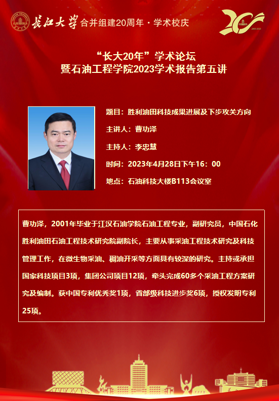上一条:“长大20年”学术论坛暨williamhill中文2023学术报告第七讲(油工高端人才系列讲座第三讲)