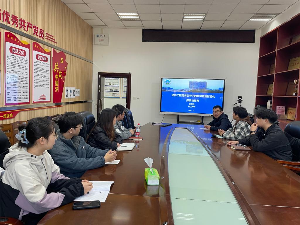 互动环节中,学生们围绕智能钻井软件开发中的难点与实践应用提出了诸多问题,包括模型校准、数据驱动的算法优化和复杂工况下的实时监测等内容。张老师耐心解答,并提出了目前尝试的一些创新性的研究,进一步激发了学生的学术兴趣。