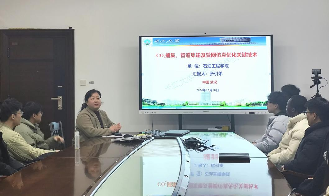 2024年12月10日晚,张引弟教授在石油科技大楼C111为油气储运专业研究生、油气储运和新能源专业部分本科生做了题为“基于智能检测的CO2捕集与管道输送关键技术”研究专题报告。