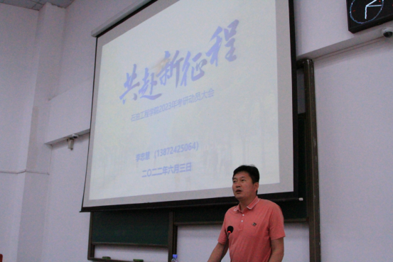 大会伊始,副院长李忠慧教授对参加本次动员大会的同学及老师表示热烈欢迎,并做《共赴新征程》主题汇报,从行业人才需求、学院研究生教育发展史、研究生培养模式、奖助体系以及报考本院研究生优势等方面做详细介绍。他强调石油是非常重要的战略资源,鼓励大家继续深造,为祖国发展贡献力量。同时学院有能力、有平台、有信心培养高质量的研究生,欢迎本校学生积极报考威廉官网中国硕士研究生。